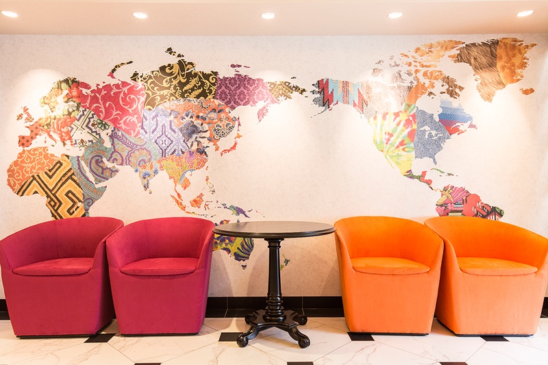 ニューヨーク、メキシコ、ロンドン、アムステルダム、パリ、ローマ、イスタンブール、バルセロナ、そして博多。ワンフロアごとに異なる都市をテーマにし、女性のテンションが上がるような鮮やかな色彩とアートで表現する。それがHotel Wing International Select 博多駅前の世界観です。