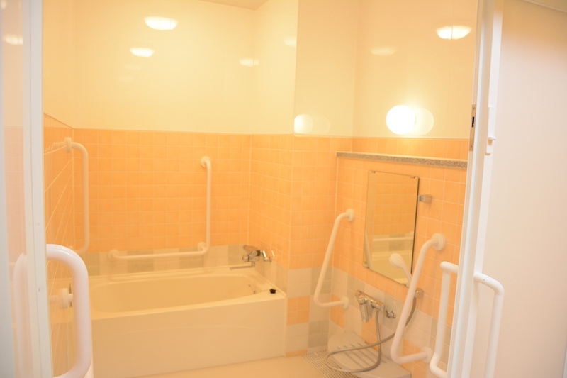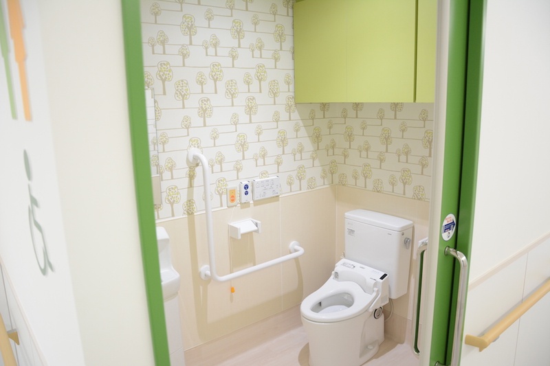 浴室は「四季」をテーマに、春・夏・秋・冬それぞれの季節を感じながら入浴できるデザイン。トイレは「生命の息吹を感じるリラックス空間」として、パネルの高さまで検討した丁寧な設計です。リハビリ以外の時間にも、来院した人が自然の癒しに触れられる空間をつくりました。