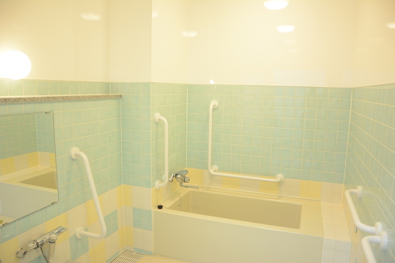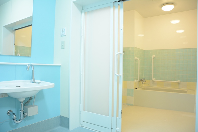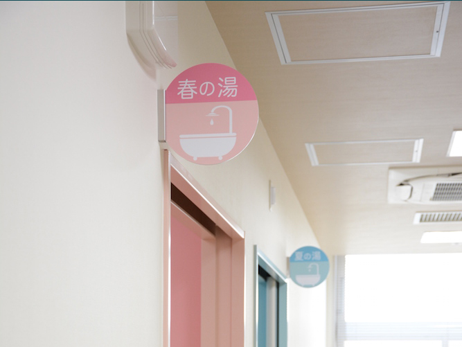 浴室は「四季」をテーマに、春夏秋冬の季節を感じながら入浴できる空間へ。トイレは生命の息吹を感じるリラックス空間。階段はカラフルな色彩で。そしてバックヤードや倉庫、汚物処理室に至るまで、スタッフが元気になれる場所としてデザインする方針を固めました。患者さんが過ごす空間だけでなく、スタッフが働く空間まで視野に入れた全体設計です。