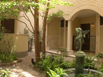 石、アイアン、噴水のオブジェなどをイタリアから直輸入。素材の力で、日本にいながらイタリアの陽気さや空気感を五感で感じられる空間を実現しました。中庭のシンボルツリーは四季の移ろいを映し出し、水の音が日常に安らぎを与えます。