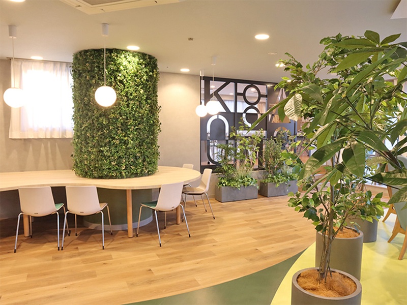 オフィスに企業のブランドカラーを取り入れ、社員の帰属意識を高める。