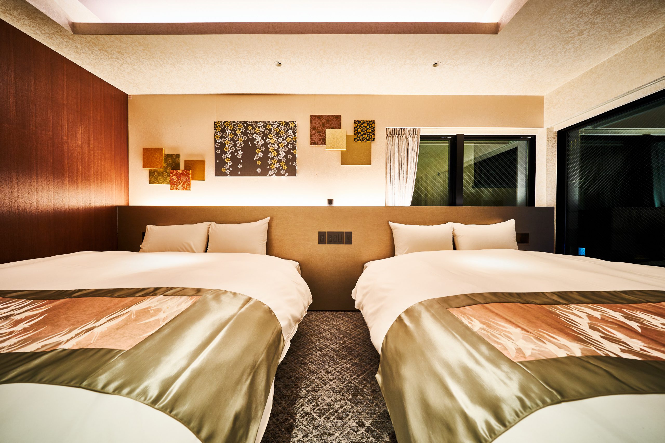 平安時代をテーマにしたアートや優雅なプライベートバス(貸し切り風呂)で特別感を演出